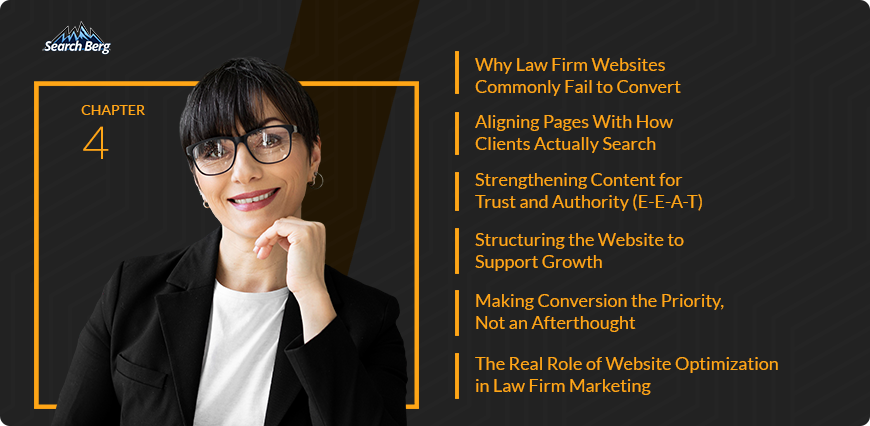 Visibility alone is not enough. Once a potential client finds a law firm, they evaluate whether it is credible, knowledgeable, and trustworthy.